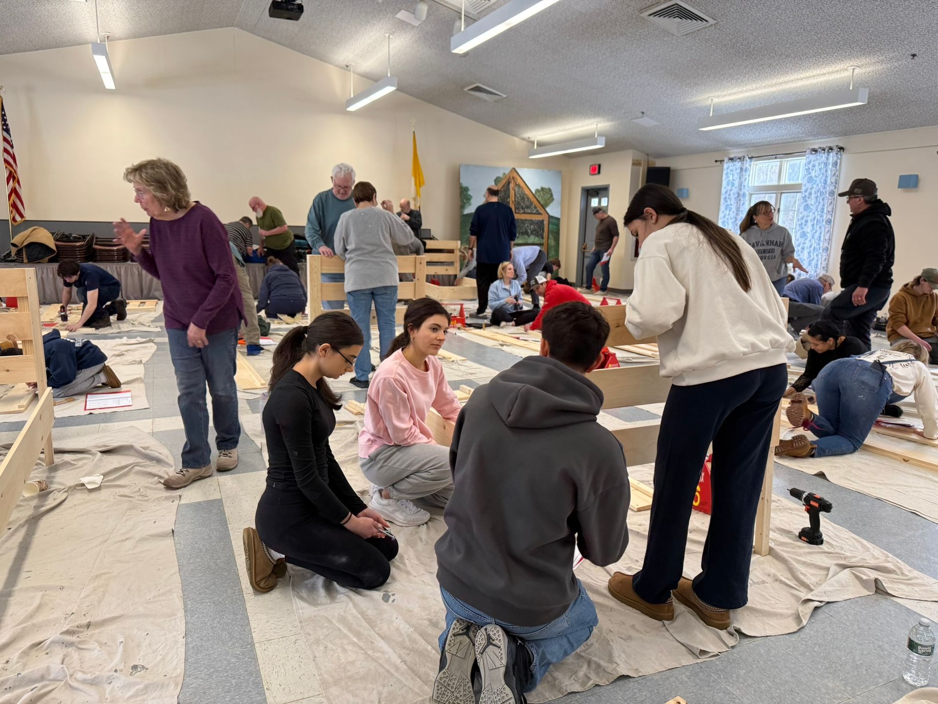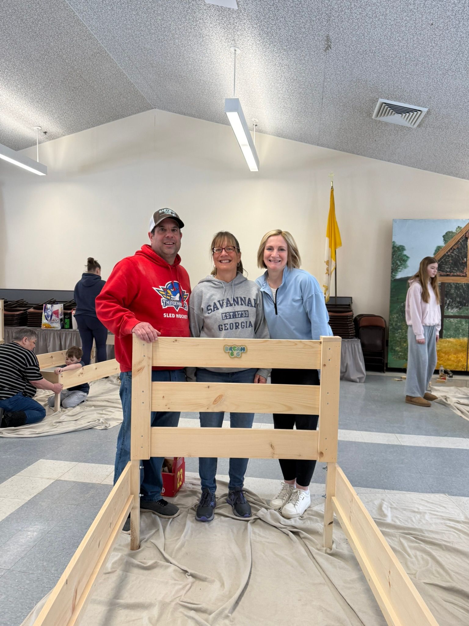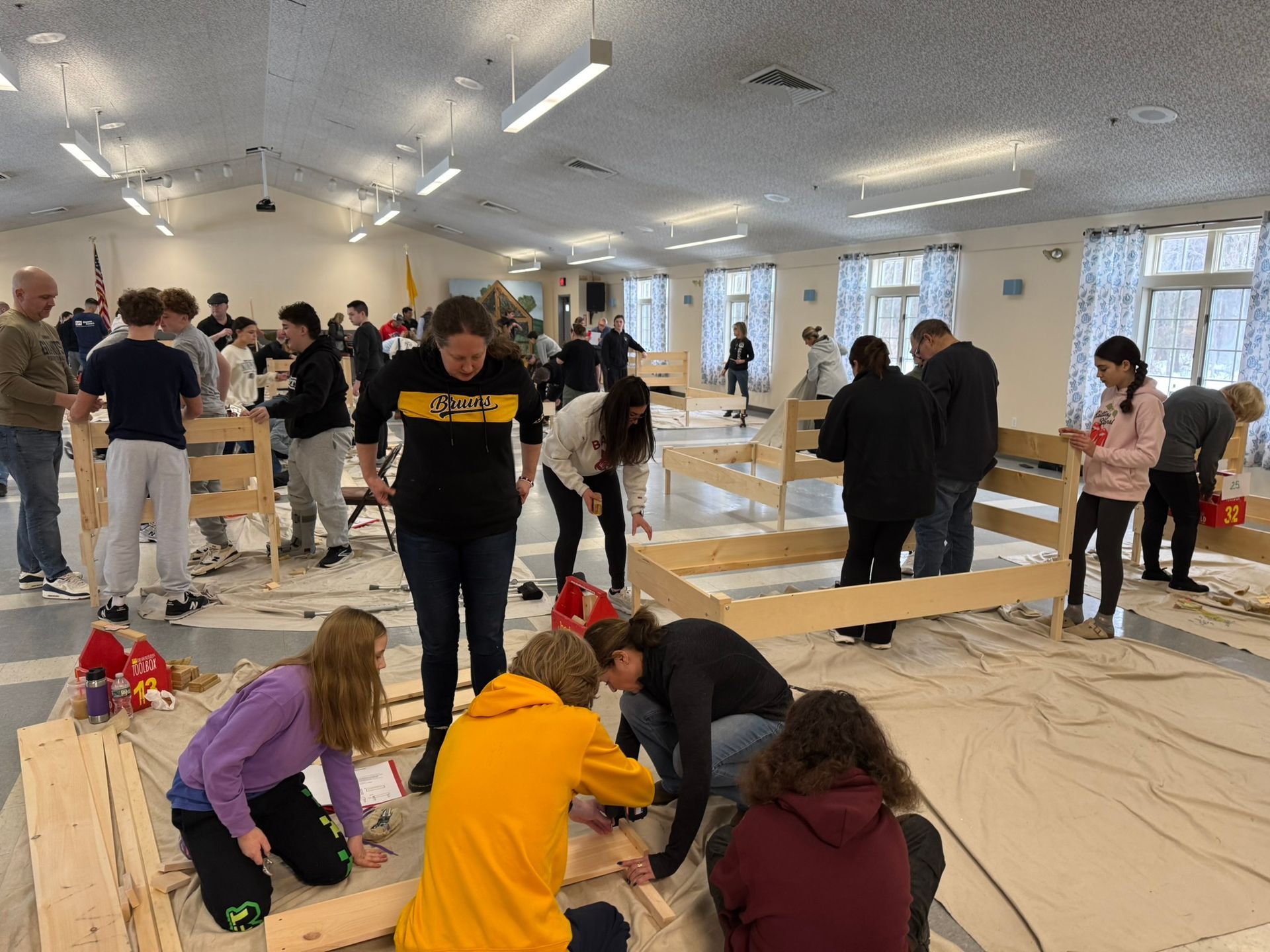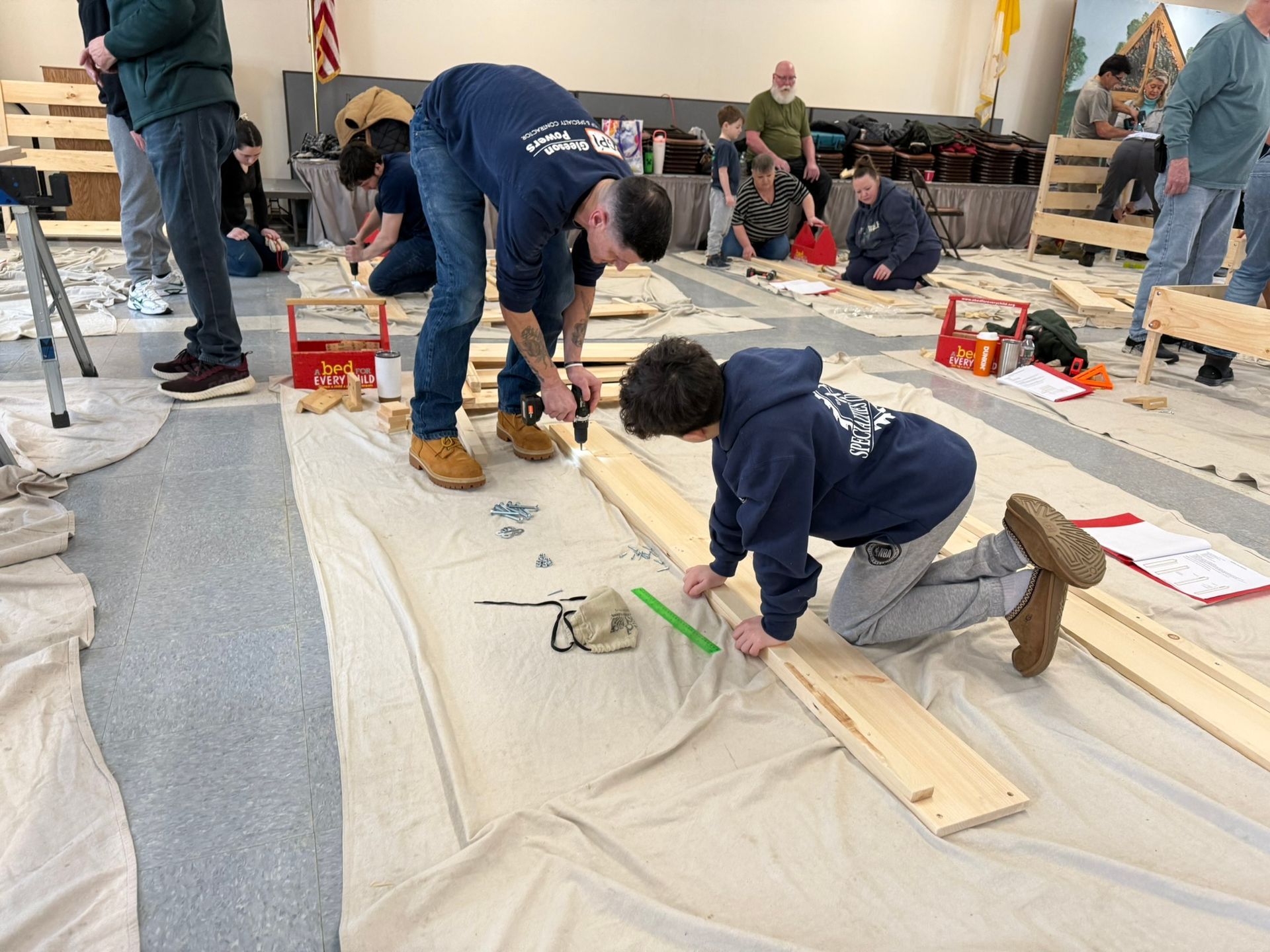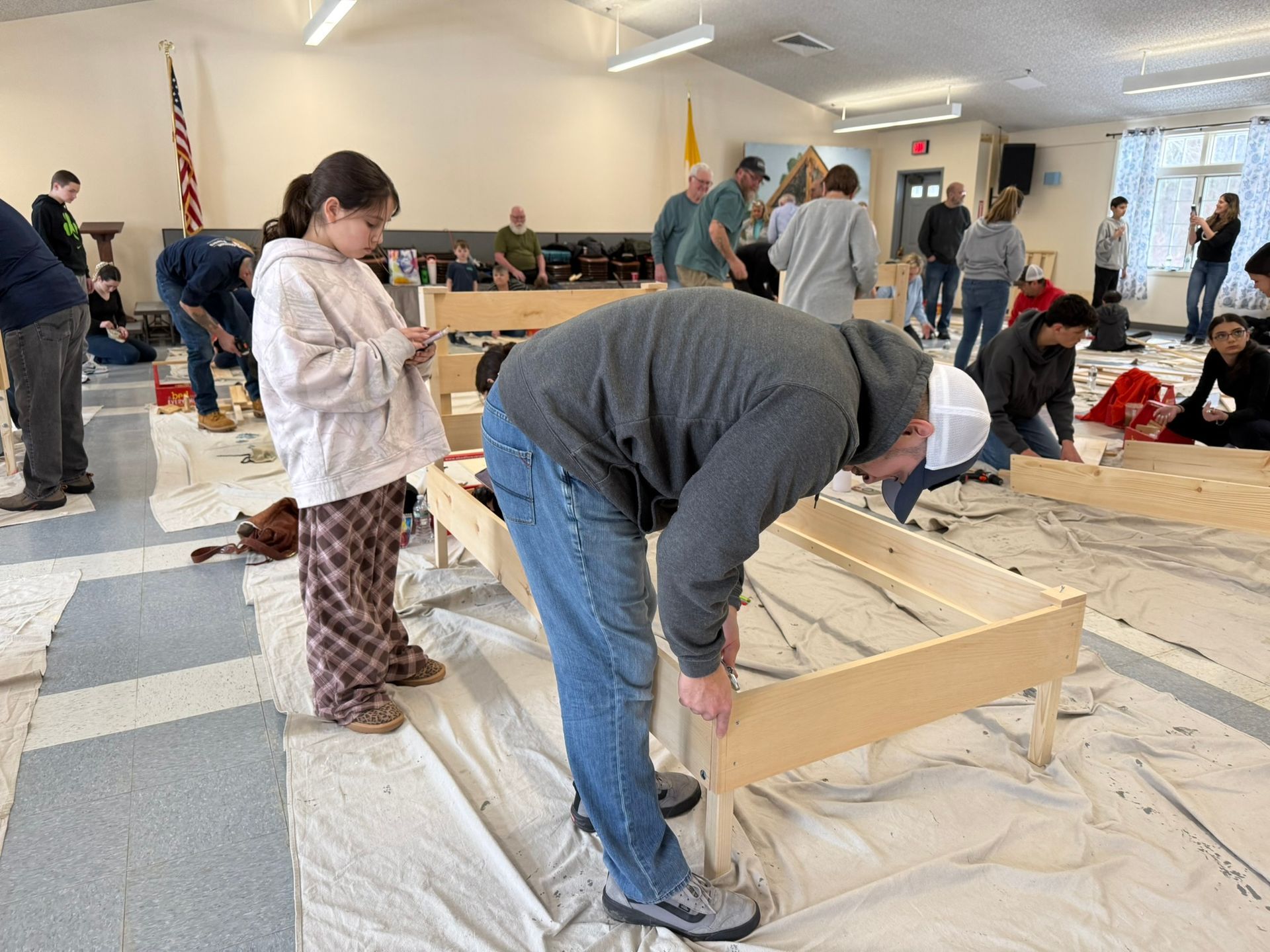 On Saturday, we had 137 volunteers who worked together in teams to build the beds. It was a great opportunity for everyone to work together for a great cause. Thank you to those who bought candy bars and /or donated money to purchase the beds. A special thank you to Betsy and Tom McDermott who donated 34 no-sew blanket kits for our Confirmation students to make blankets to go along with the beds.