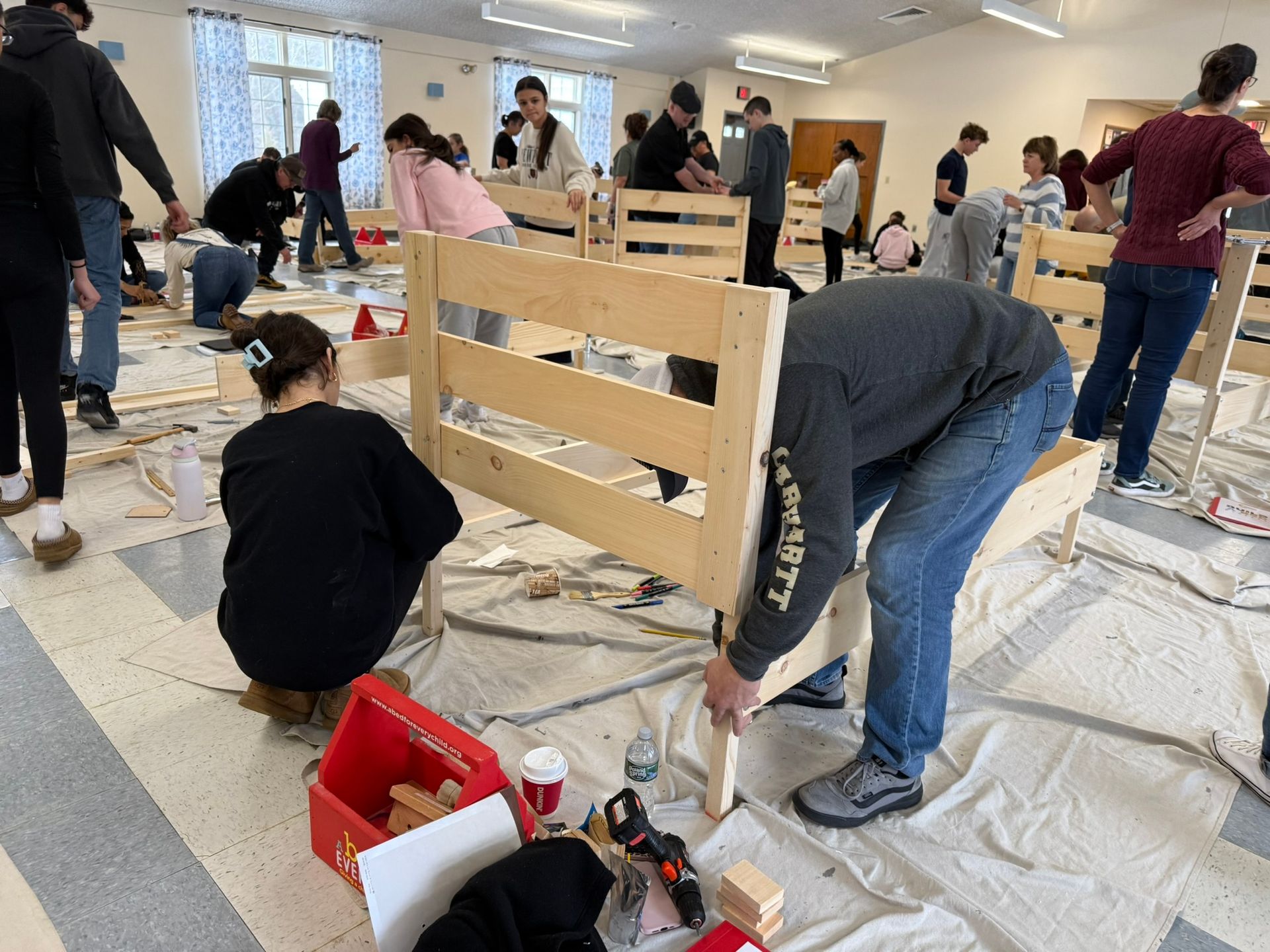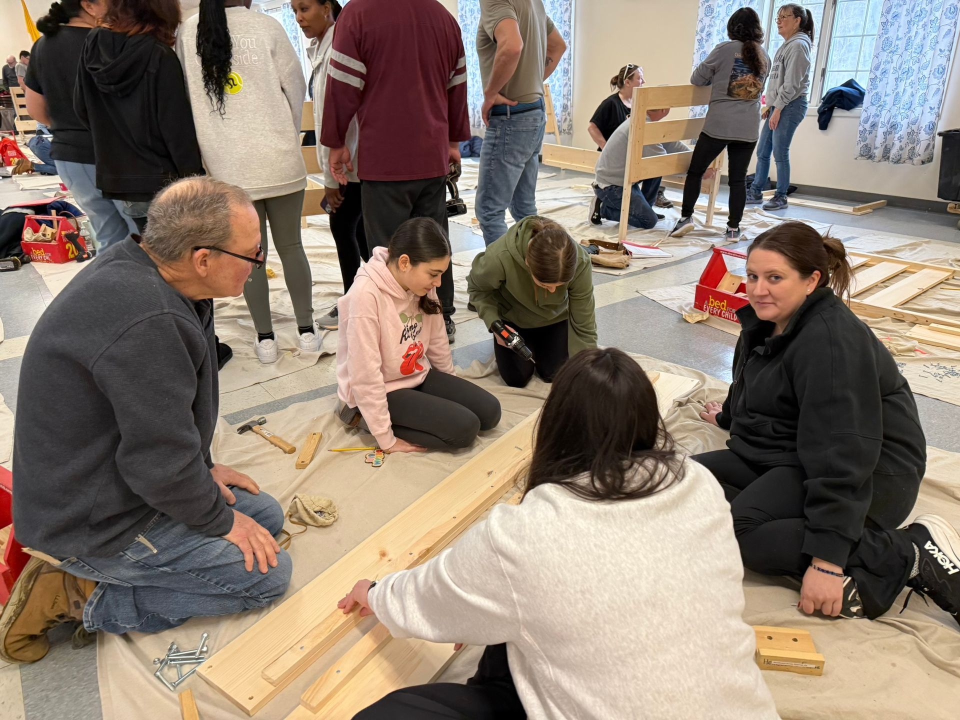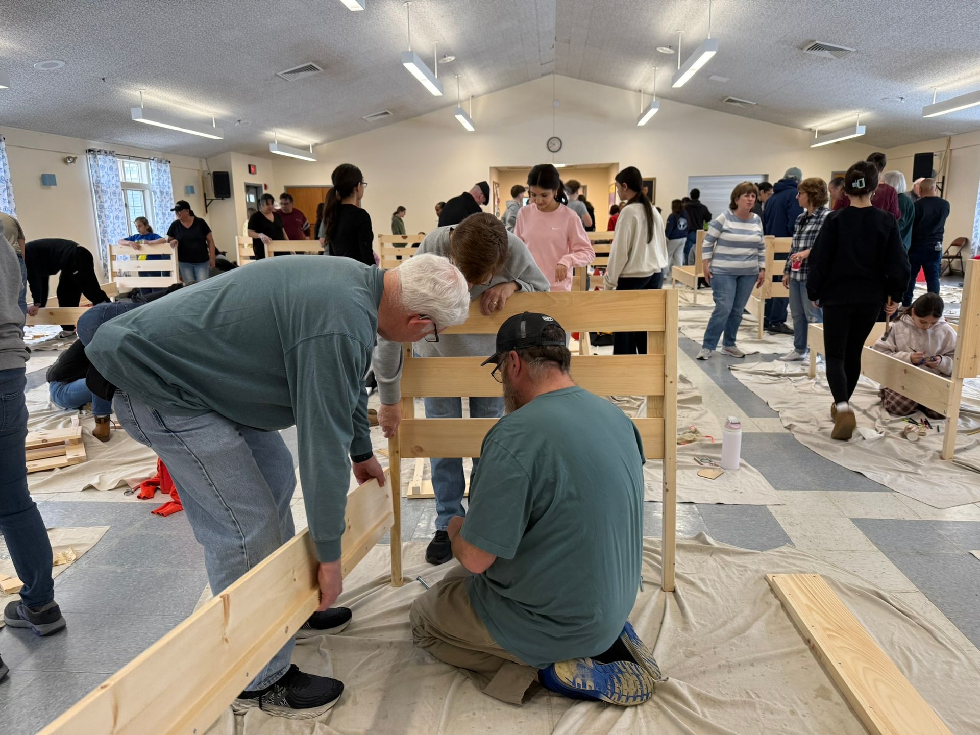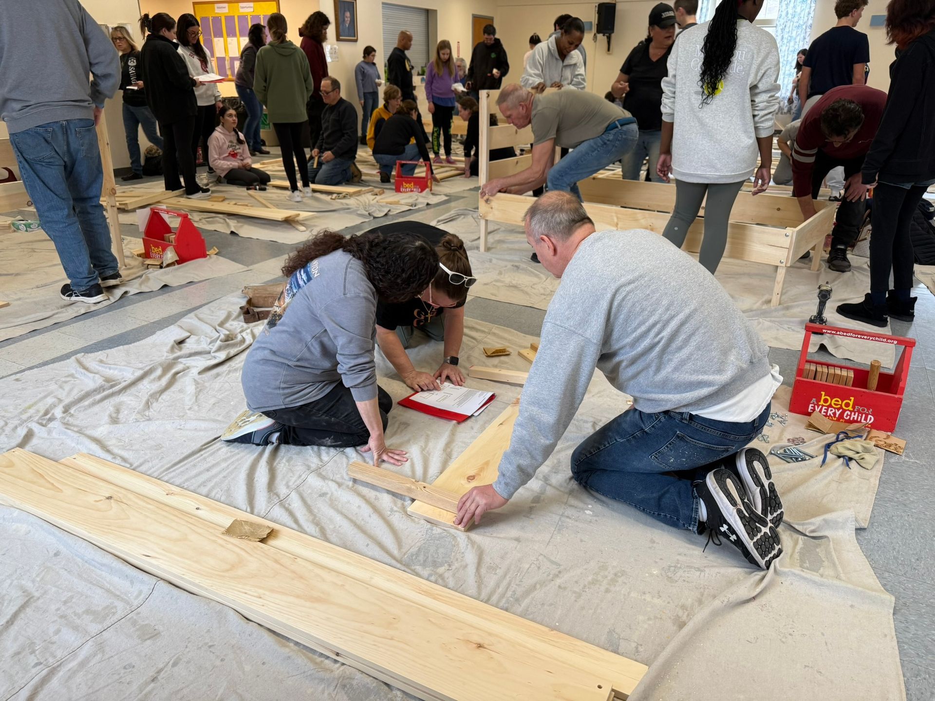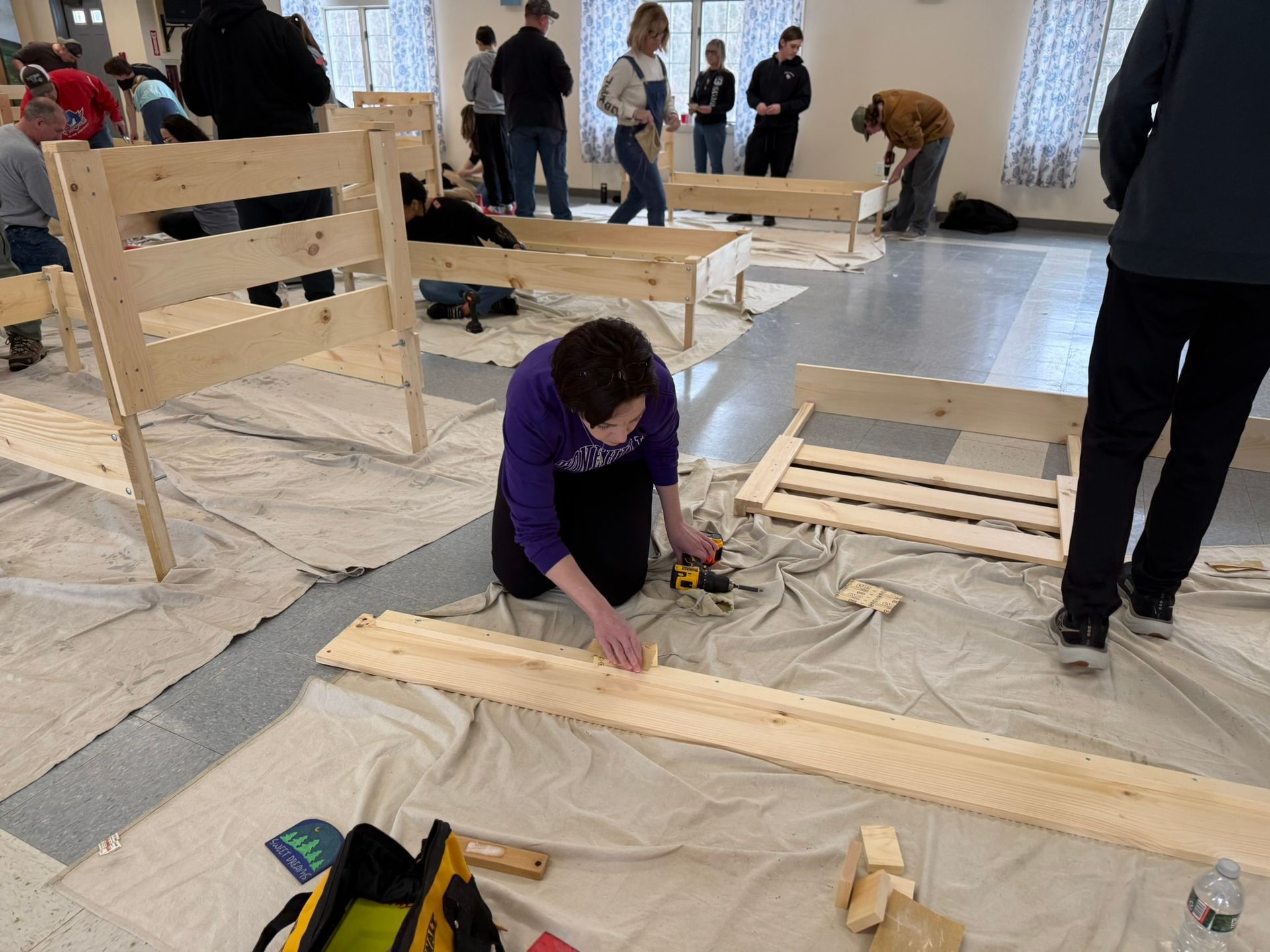 On Saturday, we had 137 volunteers who worked together in teams to build the beds. It was a great opportunity for everyone to work together for a great cause. Thank you to those who bought candy bars and /or donated money to purchase the beds. A special thank you to Betsy and Tom McDermott who donated 34 no-sew blanket kits for our Confirmation students to make blankets to go along with the beds.