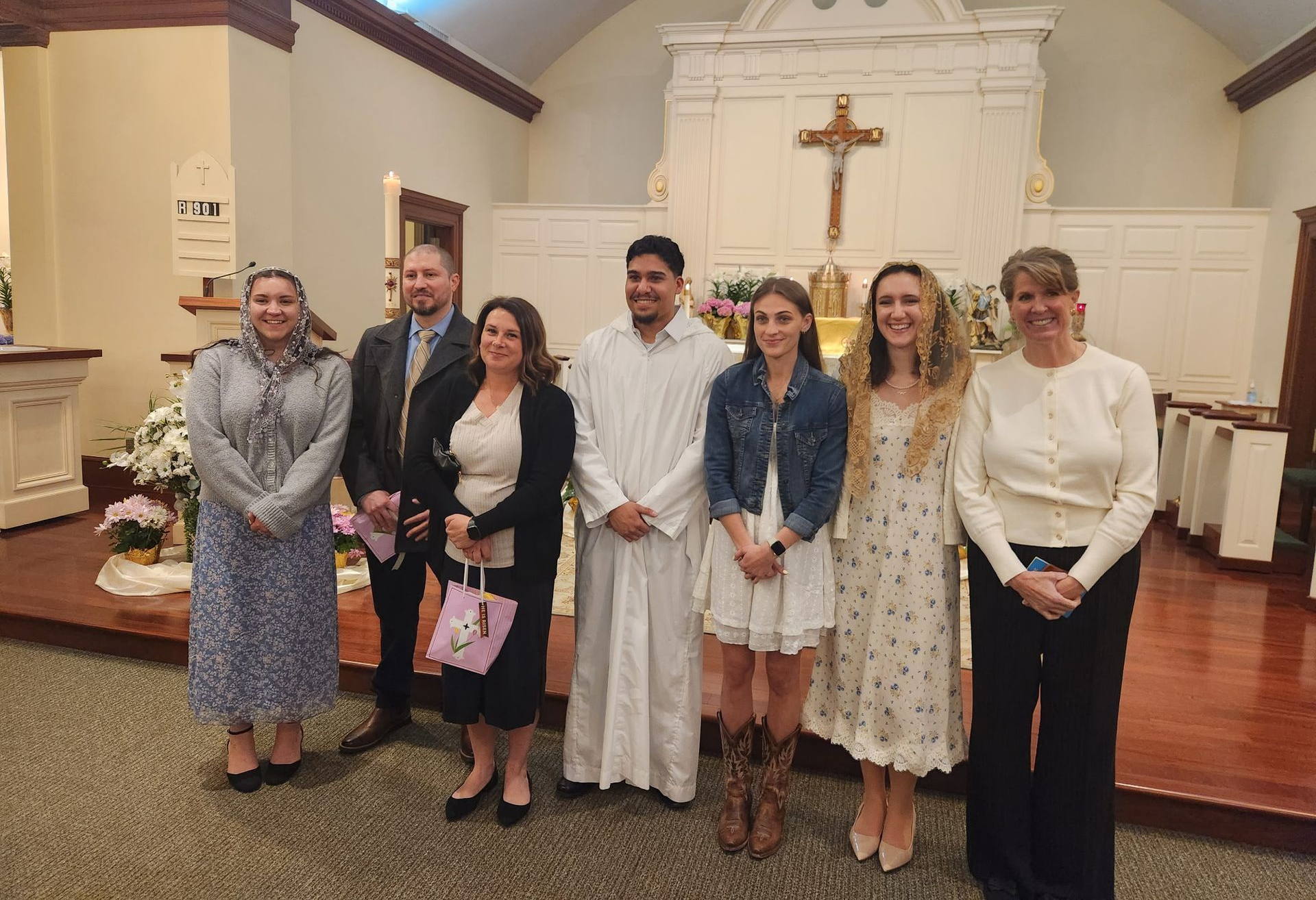 We extend our heartfelt congratulations to our newly baptized, confirmed, and professed adult Catholics who entered the Church during our Easter Vigil celebration. Keven Melo received all three Sacraments of Initiation: Baptism, Confirmation, and Holy Eucharist. Misti Bumila and Camille Cannizzaro made their Profession of Faith in the Catholic Church, were confirmed, and received their First Holy Communion. Sydney Arikian, Rachel Scally, Gabriella Stracqualursi, and Carlos Vaca also prepared for and received the Sacrament of Confirmation. We commend these faithful candidates and their generous sponsors for steadfastly participating in the seven-month OCIA process. Our prayers are with each of you as you begin the adventure of living as a faithful Catholic. We also want to acknowledge the dedicated sponsors who journeyed with these candidates throughout the process: Fernanda Silveria, Pam Benoit, Jake Sturtevant, Karen Harnois, Karen Toste, Lola Roland, and Tom Wilbur, as well as the other members of our dedicated OCIA team.
